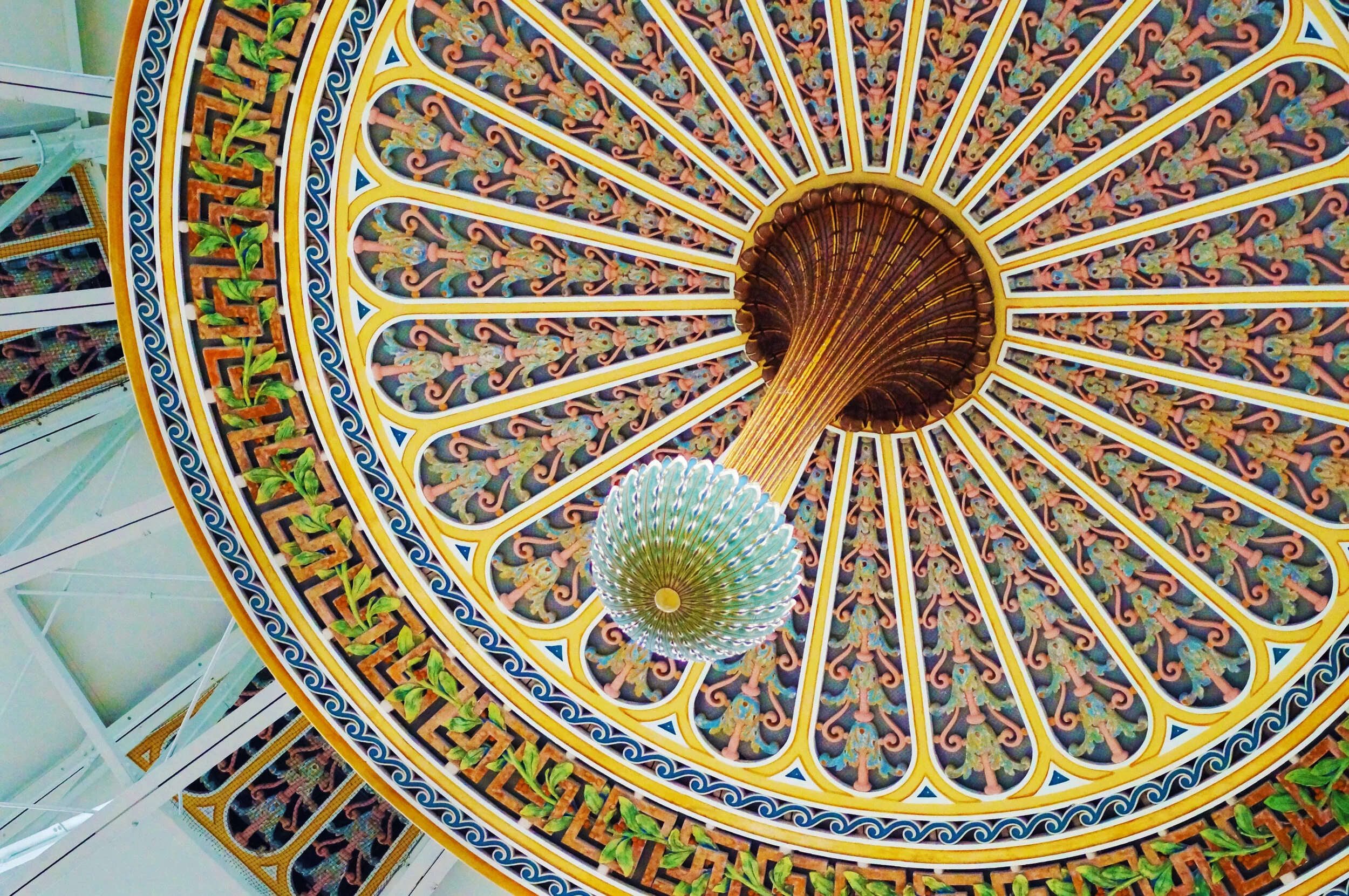 I took this photograph of the top of the dome at the West Baden Springs Hotel at French Lick, framing the dynamic composition how I wanted it. I edited the photo in Adobe Photoshop utilizing Vibrance and Brightness / Contrast to make the colors pop so that they would match what the eye actually sees in person.
